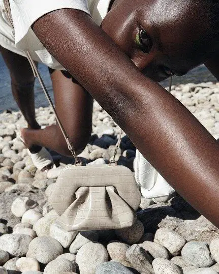 ragazza con borse a tracolla piccola in pelle squamata